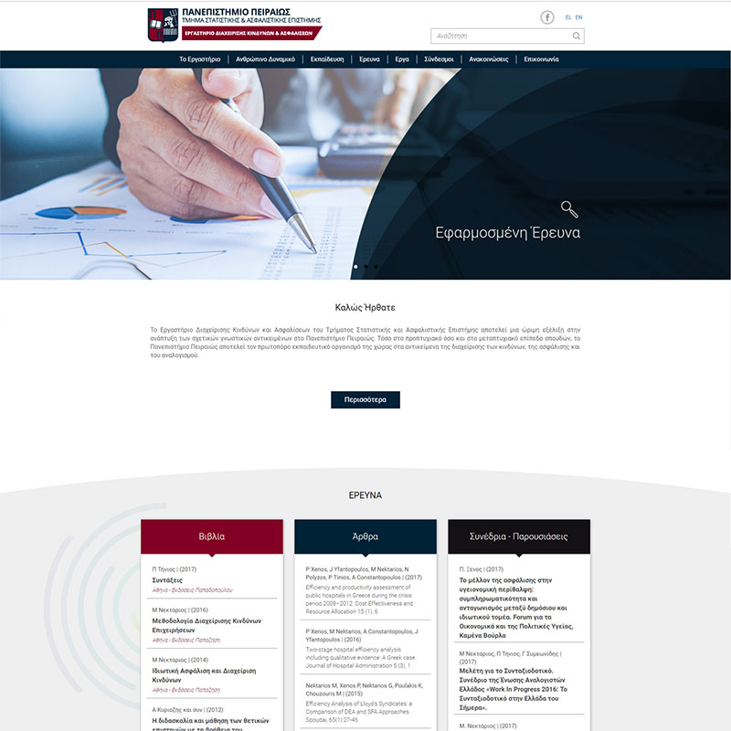 Πανεπιστήμιο Πειραιώς - Τμήμα Στατιστικής & Ασφαλιστικής Επιστήμης / Εργαστήριο Διαχείρισης Κινδύνων & Ασφαλίσεων